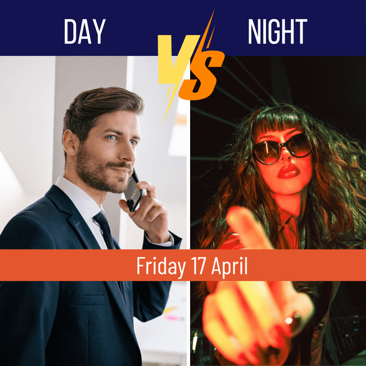 Business, office, polished, productive. Vs Party, rave, glam, chaos.Or go all in: Try a Half & half (split down the middle). Or transform at the midway stop. Start sensible… end unhinged. Your creativity is the whole point.